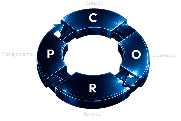 Com a Matriz PCOR, seguimos um processo integrado de Planejamento, Criação, Operação e Revisão para garantir uma presença digital consistente e otimizada para o seu SaaS.