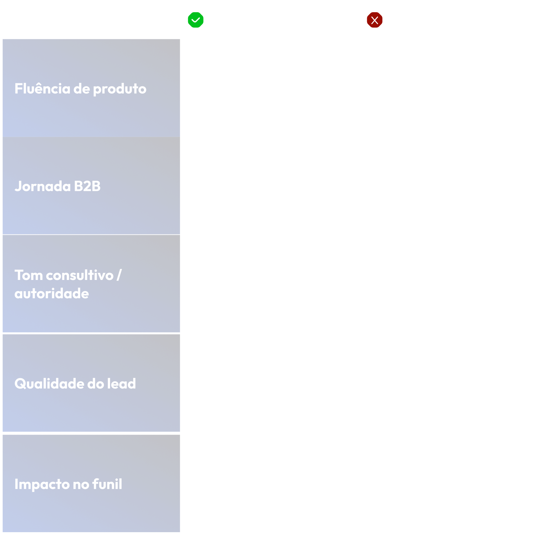 Com ICP claro, funil mapeado e linguagem técnica, conteúdo vira consideração e oportunidade.